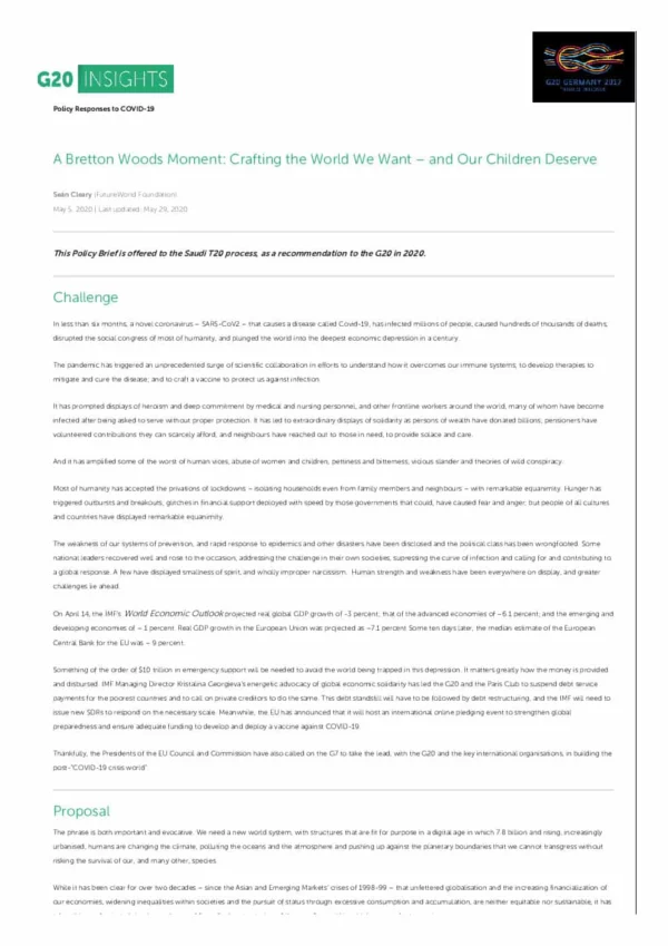 This Policy Brief is offered to the Saudi T20 process, as a recommendation to the G20 in 2020.