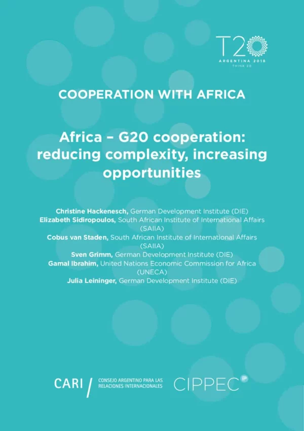 - T20 Africa Standing Group (2018) What priorities for G20-Africa Cooperation? Synthesizing T20 Africa Recommendations, G20 insights, 18 May 2018