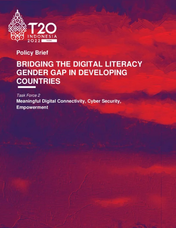 The record on digital inclusion is clear: women have been left behind. Within certain economies, cultures, and regions, the digital literacy gender gap prevents women from unlocking better learning opportunities and economic prospects. This policy brief measures the relationship between digital literacy gaps and sociocultural factors. It then describes why digital literacy gaps start forming in childhood and how most digital skilling programmes fail to address the obstacles women face in becoming a part of the digital world. It concludes by pinpointing solutions to these issues and urging the G20 and other countries to address the unique challenges of women’s digital literacy.