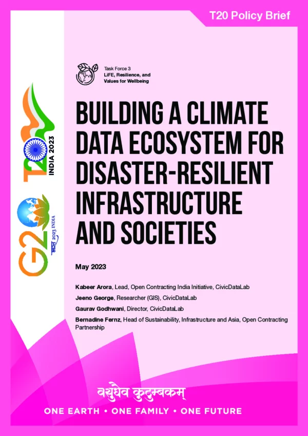 It is beyond contestation that a sound data ecosystem can help drive strategic decisions towards building disaster-resilient infrastructure, cities, and societies. However, data that could enable such strategic decisions is scattered across different agencies, scales and formats, limiting their utility for informed decision- making. This results in inefficient actions or ad-hoc responses that fail to cater to urgent needs during emergencies or provide sustainable long-term solutions. There is an urgent need to commit towards a comprehensive G20 Climate Data Ecosystem that allows modelling intelligent solutions using advanced artificial intelligence and machine learning techniques to inform decision-making. Such an ecosystem needs to look at climate data holistically and make interoperable, AI-ready, standardised datasets available across current data silos.
