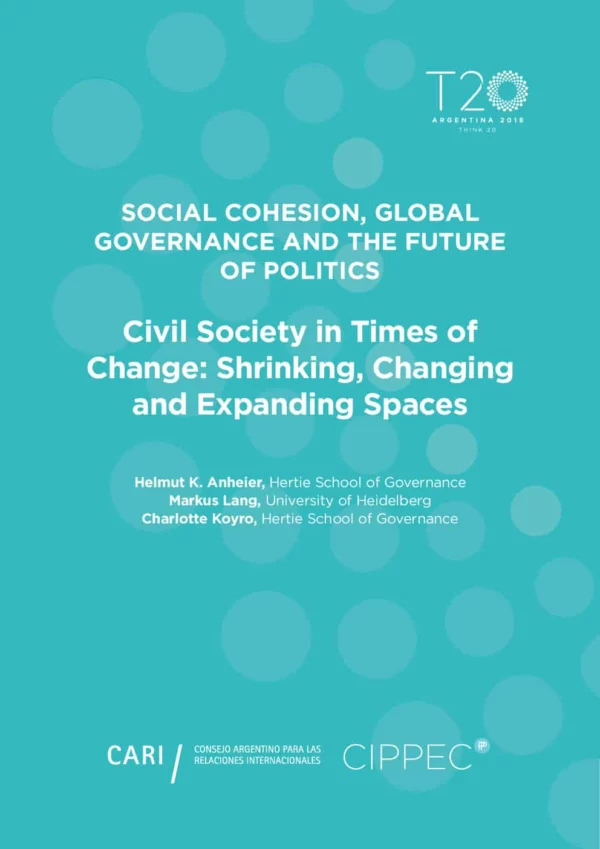 Civil society, challenged in many ways yet harboring huge potential, finds itself at a crossroads in many G20 countries. Against the backdrop of the erosion of civil society space, it is time to act and chart a way forward. Fifteen years after then Secretary General Kofi Annan initiated the first ever expert panel to examine civil society in a broader, international context (United Nations 2004), it seems urgent to revisit the role of CSOs in a geopolitical environment that has radically changed. There is an urgent need to cut through the cacophony of policies regulating CSOs and find ways to counter-act even reverse the general deterioration of civil society space.