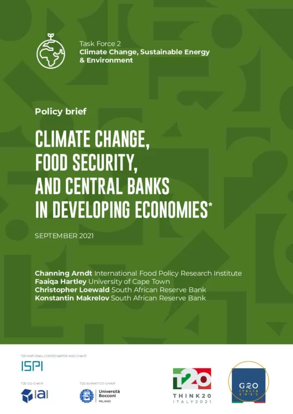 Climate change represents a rapidly emerging challenge for central banks, particularly in developing economies. Central banks have tools to increase the economy’s resilience, enable reallocation of resources to reduce costs and grasp opportunities, and smooth the transition to a low carbon economy. Specific measures, such as changes to selected macroprudential rules, merit consideration. The climate challenge also highlights two traditional mandates. First, price and financial stability support investment and long-term price discovery, both crucial to climate response. Second, central banks are already critical providers of information to public and private decision-makers. Creation and dissemination of knowledge that facilitates improved decision-making by public and private actors (notably investors) may be central banks’ most important contribution to more favourable social, economic, and environmental outcomes in a context of climate change. The T20 can play important roles in facilitating this knowledge acquisition by central banks in developing countries.