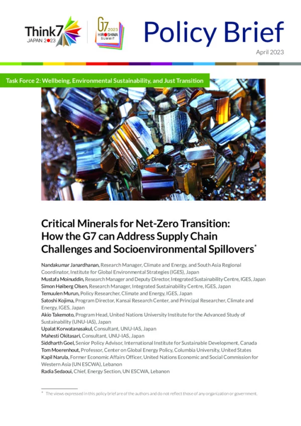 As the world’s most developed economies, the Group of Seven (G7) countries play a crucial role in leading the transition to net-zero, which necessitates the use of critical minerals (CMs) in various clean energy applications. However, the growing demand for CMs raises questions about the socioeconomic, environmental, and supply security implications, given its unequal distribution and the reliance on international supplies.