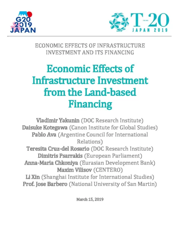 The challenges of the modern world, such as urbanization, the urgent need to increase access to infrastructure are forcing many countries to look for new solutions to support economic growth and a sustainable development agenda. Meanwhile, there is the problem of the infrastructure investment gap, when state development institutions are in dire need of money to implement the long-term infrastructure projects. According to The Global Infrastructure Outlook, the demand across 50 countries and seven sectors to 2040 for investment resources may reach $97 trillion US dollars (Oxford Economics, 2017). To solve this problem, the active participation of private companies is proposed through the framework of public-private partnership. In July 2016, G20/OECD Task Force on Institutional Investors and Long-term Financing provided the supporting note to the Guidance Note on Diversified Financial Instruments, Infrastructure to the G20 Finance Ministers and Central Banks Governors and the G20 leaders. Land-based financing was indicated among innovative financial approaches; its mechanism uses land jointly with financial/tax instruments (such as tax increment financing), so that infrastructure investment spurs growth in the economic sector as a whole. At the same time, there are a number of challenges when applying this tool that should be resolved for practical successful implementation.