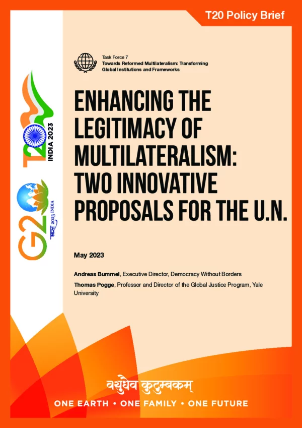 India’s G20 presidency in 2023 is grounded in the theme ‘Vasudhaiva Kutumbakam’ (One Earth-One Family-One Future). One of six overall priorities of India’s G20 presidency is “to continue pressing for reformed multilateralism that creates a more accountable, inclusive, just, equitable and representative multipolar international system that is fit for addressing the challenges in the 21st century.”1 This policy brief responds to this priority. Exploring the need for reformed multilateralism and the role the G20 can play as a group and through its individual members, it sets forth two specific recommendations for action at the United Nations: the creation of a United Nations Parliamentary Assembly, and the instrument of a UN World Citizens’ Initiative.