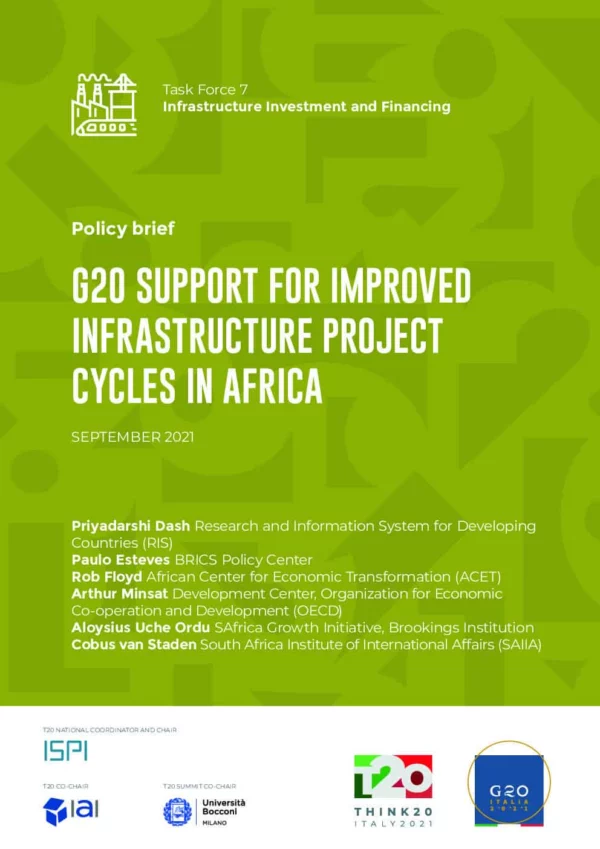 This policy brief proposes three specific policy recommendations. The first is that that G20 countries and institutions and the G20 CwA should systematically support promoting the wider use of the African Union-endorsed PIDA Quality Label (PQL); and further, that they should support promotion of the quality label as an African brand for excellence in infrastructure development processes that can serve to accelerate project pipelines across the continent.