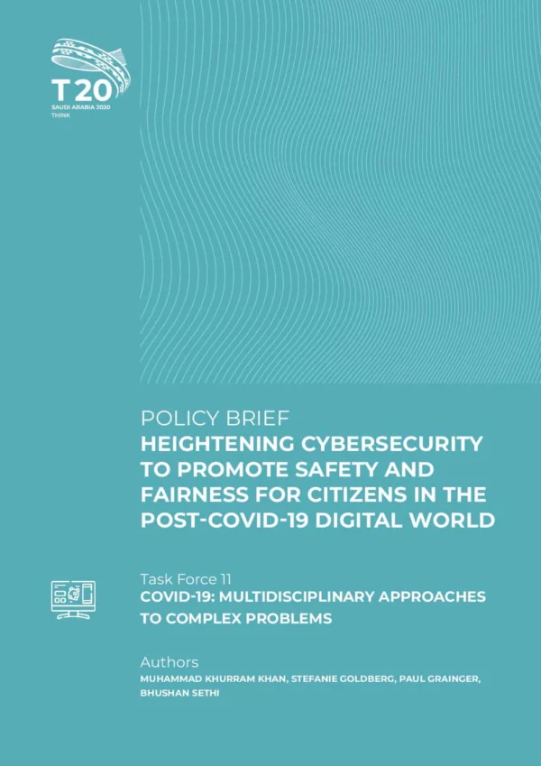More broadly, the short-term non-health consequences of the pandemic have come about because of the dislocations to the economy. Disrupted supply chains, a recalibration of values, collapse of some business sectors, and the insolvency of businesses have led to unemployment, underemployment, and the redundancy of certain skills. This reinforces poverty, thereby reducing demand, and creating a recessional cycle. Poverty weakens the individual’s ability to establish protective digital systems. The G20 can play an active role in helping establish protections that are economical and cost effective for consumers and citizens. To protect people, networks, and supply chains worldwide, international protocols and basic education on cybersecurity are needed. Furthermore, they should be updated regularly as new forms of technology and new threats emerge (e.g., contact tracing apps for COVID-19).