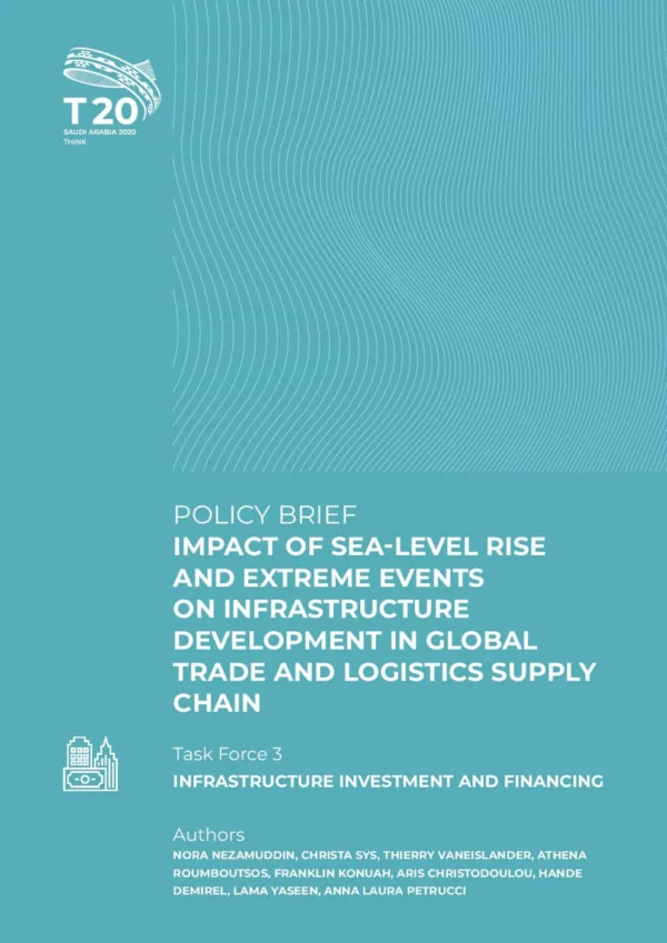 This policy brief focuses on actionable recommendations and specific policy actions to establish resilient physical and digital international freight infrastructure. The aim is to reduce and alleviate disruptions to the movement of goods along the value chain—primarily because of climate change, but also in the face of extreme events— and the management of sudden disruptions. The G20 can propose specific measures to the international community to adapt to or mitigate disruptions in trade. Additionally, the G20 can work with some of the aforementioned institutions to adopt some of the policy recommendations.