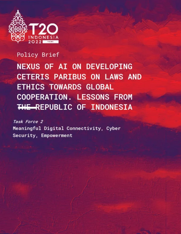 The G20 is the leading intergovernmental forum to produce practical policies for implementing trustworthy and human-centric AI, such as declaring the framework to formulate The Treaty of Basic Principles on the Use of Artificial Intelligence as International Law. As a central world economic forum, G20 has a strategic position because G20 members collectively represent around 60% of the world’s population, 75% of global trade, and at least 80% of the world’s Gross Domestic Product (GDP). Such practical policy is a continuation of the past G20. In the 2017 G20 Hamburg, G20 Leaders stated that the G20 Roadmap for Digitalization would help to guide our future work, including to further discussing frameworks as enablers for workforce digitalization. In the 2019 G20 Japan, G20 Leaders stated that the G20 supports the principles for responsible stewardship of trustworthy AI and takes note of the recommendations of national policies and international cooperation for reliable AI. One of G20 Indonesia 2022’s Priority Issues, Digital Transformation, aims at a new landscape for collaboration among Nations to secure shared prosperity in the digital age.