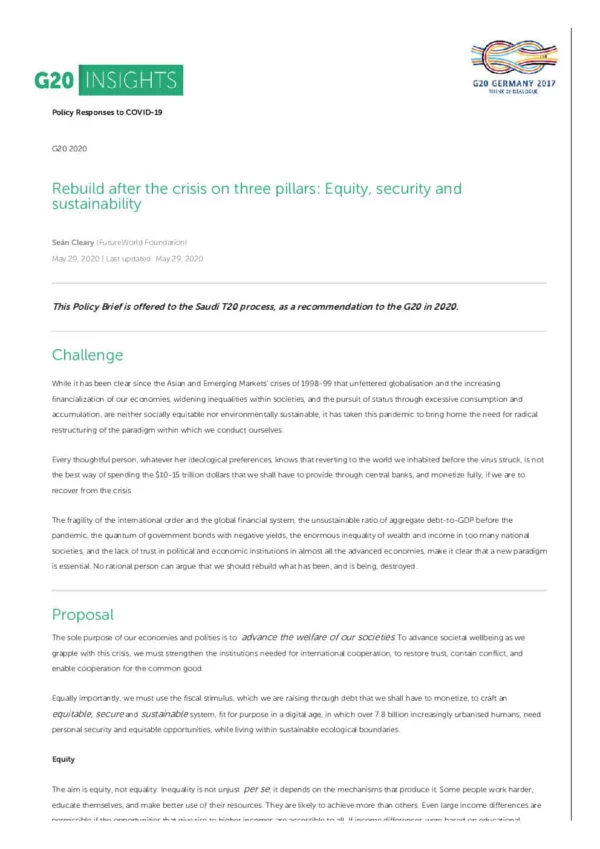 This Policy Brief is offered to the Saudi T20 process, as a recommendation to the G20 in 2020.