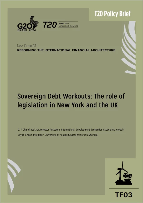 Recent experience illustrates the severe challenges in restructuring external sovereign debt after a default, especially given the multiplicity of creditors. Private creditors accounting for more than 60 per cent of public and publicly guaranteed (PPG) external debt of low and middle income countries (LMICs) have been unwilling to settle for restructuring terms negotiated with bilateral creditors. And even when the possibility of such a settlement arises, the process can be scuttled by one or more hold-out vulture funds that want repayment in full. This is surprising because 96 per cent of the $1.3 trillion worth of sovereign bond debt outstanding at the end of March 2020 included collective action clauses (CACs) in contracts meant to force creditors to the table. The inadequacy of these CACs has triggered efforts to find alternative ways of enforcing debt renegotiation terms. Since almost all developing country sovereign bonds are subject to New York or English law, changes in the relevant laws in these two contexts may assist successful restructuring within a reasonable timeframe. A law currently under discussion in the legislature ofNew York, if passed, would force private creditors to accept the same terms as negotiated with creditor governments. Similarly, in the UK, a House of Commons Committee report has made a case for legislation that would force private creditors to join negotiations over and participate in debt workouts. However, these legislative reforms are facing opposition from private creditors, who argue that such laws would force a retreat of creditors from developing country sovereign bonds as well as raise the cost of any debt that may be provided. This brief examines the legislative changes proposed, assess their adequacy and the obstacles to implementation, and recommend measures and means that would help put in place a framework of law to facilitate and accelerate restructuring in jurisdictions that cover much of developing country debt.