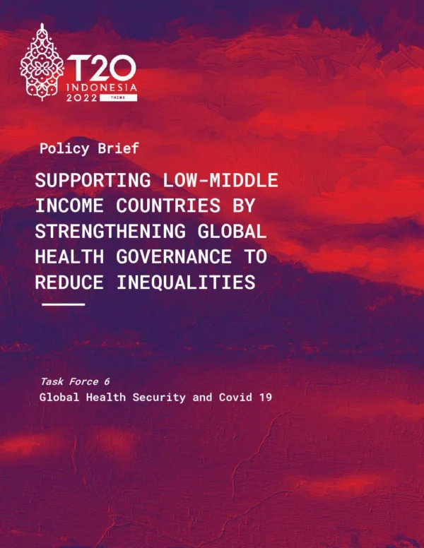 The COVID-19 pandemic exacerbated pre-existing inequalities and highlighted gaps in global health security. Global Health Governance and policymaking is a multi-stakeholder process, and the lack of an explicit institutional process and global health architecture has led to an uncoordinated proliferation of overlapping global health organizations with opposing frameworks. G20 can play a significant role in scaling up political commitment and catalyzing efforts to reframe the global health architecture in a more coherent direction to tackle emerging global health threats that require collective action. G20’s support is consequential in this changing epidemiological landscape, necessitating additional funding to strengthen WHO and IHR and its compliance. It is time to take bolder actions by providing a clear roadmap for inclusive solutions in their approach, holding themselves accountable, and following through on their financial commitments for global health preparedness.