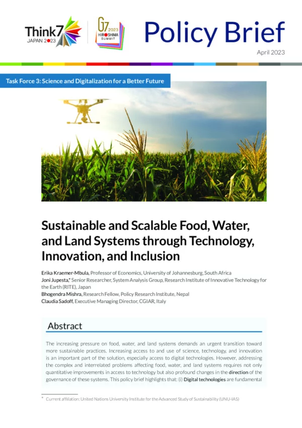 The increasing pressure on food, water, and land systems demands an urgent transition toward more sustainable practices. Increasing access to and use of science, technology, and innovation is an important part of the solution, especially access to digital technologies. However, addressing the complex and interrelated problems affecting food, water, and land systems requires not only quantitative improvements in access to technology but also profound changes in the direction of the governance of these systems. This policy brief highlights that: (i) Digital technologies are fundamental for system-wide change in food-water-land systems by improving the monitoring, access, and use of new data and evidence for decision making, as well as helping scale up existing innovations that have transformative potential at the grassroots/community level. (ii) Participatory modes of governance need to be prioritized as the standard practice for sustainable food-water-land systems. This approach recognizes that effective governance requires the active participation of stakeholders, particularly local communities, in decision-making processes related to the management of food, water, and land resources. (iii) Policy experimentation is essential for the implementation of sustainable food-water-land systems, as it can help identify and test new approaches to complex challenges based on participatory approaches and build experience in using evidence in designing policy solutions.