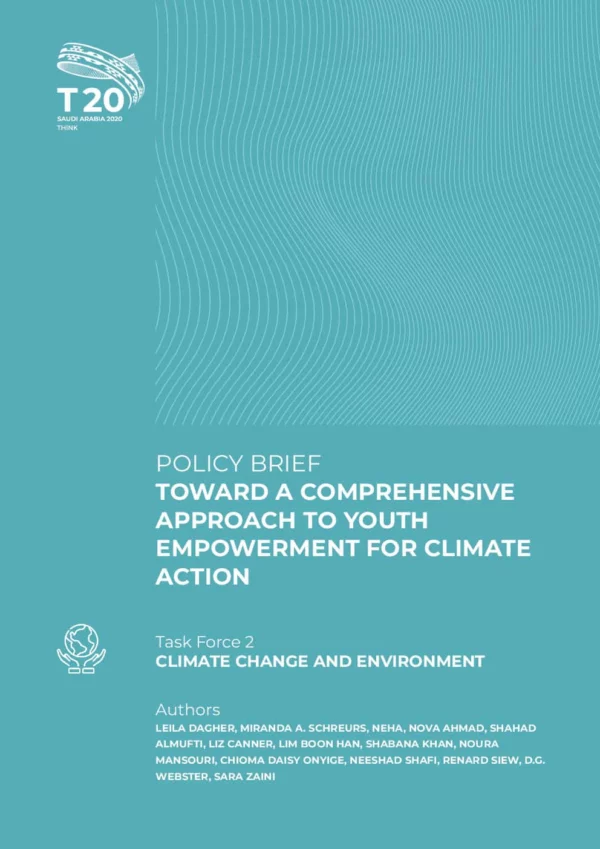 This brief focuses on empowering the youth to act on climate change and environmental protection by strengthening formal and informal environmental and sustainability education. Environmental education is the foundation for problem recognition and solving. The G20 is in a powerful position to exercise environmental and climate leadership by mandating sustainability and environmental education domestically, regularly tracking environmental and climate literacy internationally, investing in infrastructure and educator training for environmental education, promoting games drawing on real-world problems, developing partnerships for environmental education in local communities, and organizing an annual Youth Summit for Climate, Environment, and Sustainable Development Solutions.