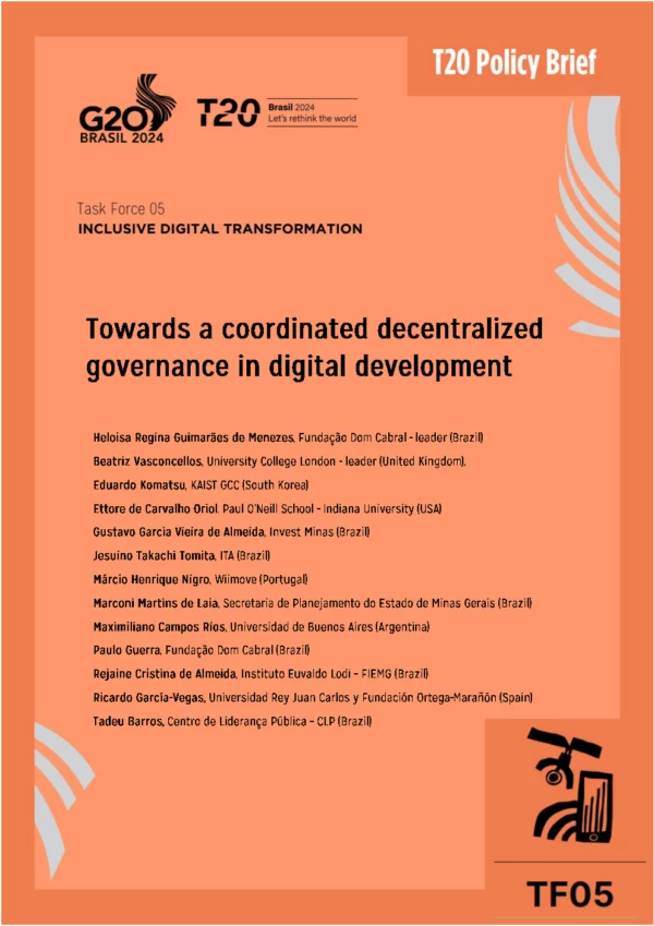 Digital transformation can potentially solve chronic societal problems, but the direction of the transformation is not neutral. Effective governance and government capabilities are thus required to guarantee that the direction is set to foster inclusion and social benefits while preventing harm. However, some challenges must be addressed: the speed of technological changes, limitations of their social impact, deficits in the institutional capacities of public organizations to innovate and ensure the development of digital transformation processes that fully connect with their purposes and nature; and the digital divide inherited social inequalities. To address these challenges, the report outlines strategic guidelines for G20 countries that prioritize inclusive policies and regulations, instill trust, ensure equitable access for citizens, and foster innovation. For each of the recommendations, examples were used that offer tangible evidence of the guidelines in dynamic action. Most examples are still less frequent than they should be, and we used some conclusions and evidence from the United Nations and the World Bank to show that. This report advocates for actionable steps for G20 nations toward a coordinated decentralized governance in digital development.