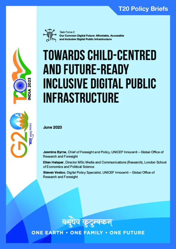 Digital public infrastructure (DPI) has the potential to enable an inclusive digital transformation of societies, including for children. However, this outcome is not inevitable unless current approaches to digital inclusion change and become more holistic. In a review carried out with the London School of Economics, UNICEF examined select digital inclusion policies from five regions and 17 countries (including 10 G20 members and two G20 guest countries) and found that, overall, they were not sufficiently child-centred, focused on inequalities, or future-ready. However, we identified promising practices and opportunities for improvement. Drawing on the findings, this policy brief offers three recommendations to the G20 for an effective DPI: develop inclusive digital policies for and with children; take a holistic approach to deal with child digital inequality; and better anticipate the effects of emerging technologies and democratise their associated benefits.