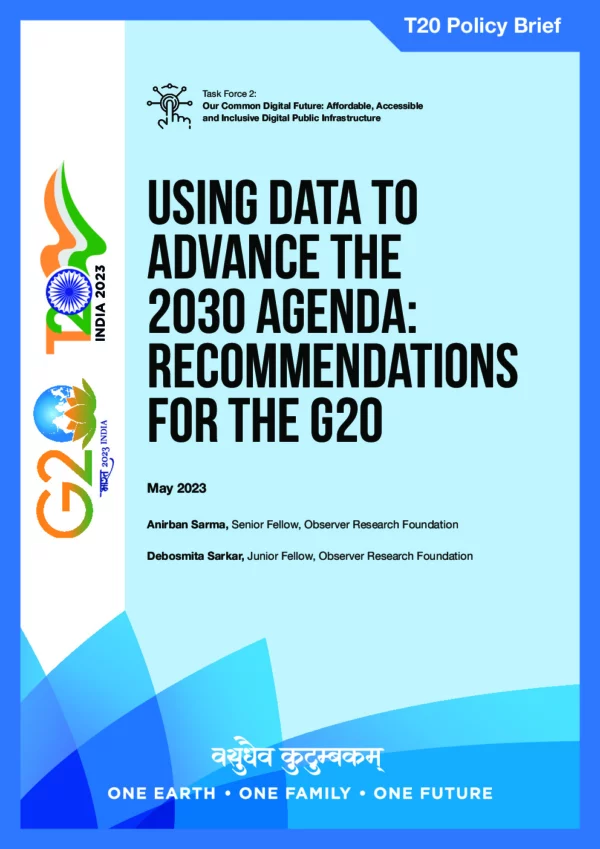 Ahead of the G20 Leaders’ Summit in Bali in November 2022, India pledged that the principle of ‘data for development’ (D4D) would be integral to its G20 presidency. At its first meeting in December 2022 as India assumed the Presidency, the G20 Development Working Group stated that it would focus on the collection, sharing and analysis of D4D to support efforts to achieve the SDGs. This Policy Brief notes that the data landscape across the G20 remains highly uneven, with some countries doing better than others in leveraging data for the achievement of the Development Agenda. There are three main obstacles to current D4D efforts: (i) The prevalence of marked data divides between the Global North and South, and within countries; (ii) The difficulties posed by issues of data privacy, security, interoperability, and sharing; and (iii) The need for greater technical and institutional capacity, particularly to rejuvenate legacy datasets by applying emerging and disruptive technologies (EDTs) and to produce next-generation datasets using EDTs. The brief proposes eight strategic actions that G20 member states could jointly undertake to address these challenges, promote D4D, and advance the 2030 Agenda.